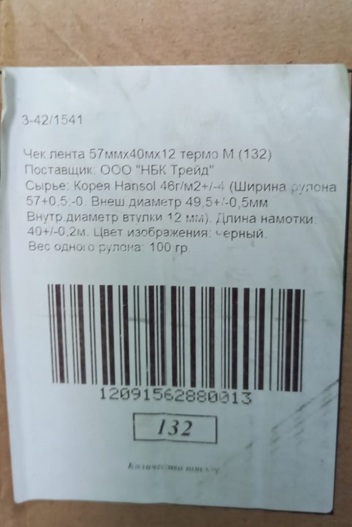 Чековая лента 57х12 40м.