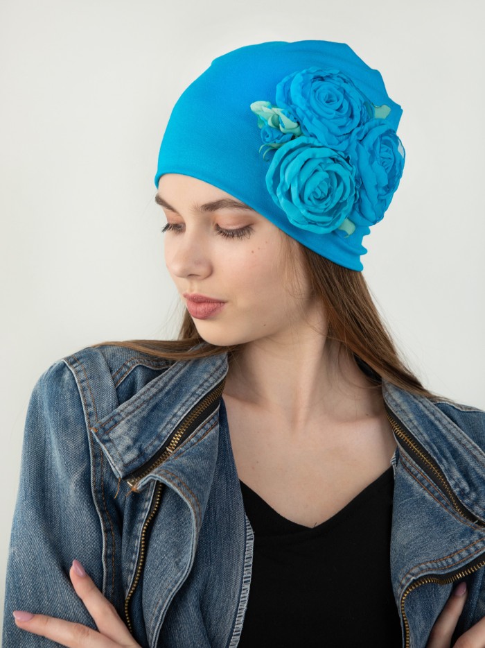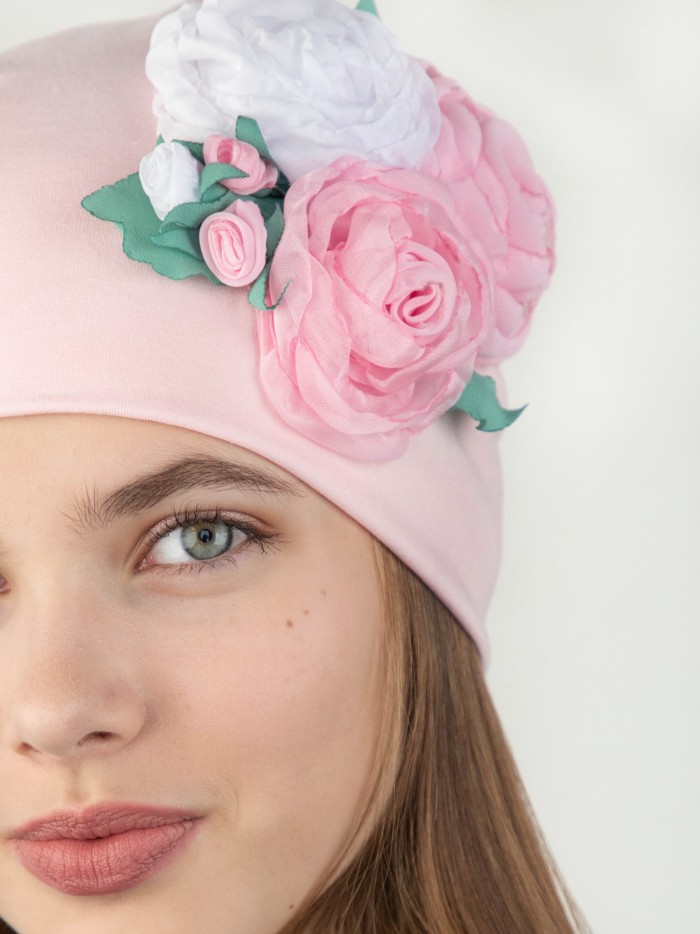 А еще каждый лепесток на цветке обработан термически, поэтому края не осыпятся даже при стирке. Все цветочки и бутоны на композиции выполнены вручную нашими мастерицами и надёжно закреплены. Сама шапочка сшита из экологичной ткани - хлопка, цветочки- из шифона. Она достаточно эластичная, поэтому подойдет для объема головы от 52 до 58 см. Материал не скатается и не полиняет. Он лёгкий, дышащий, весной в шапочке будет тепло, а летом она защитит ваши волосы от палящего солнца.