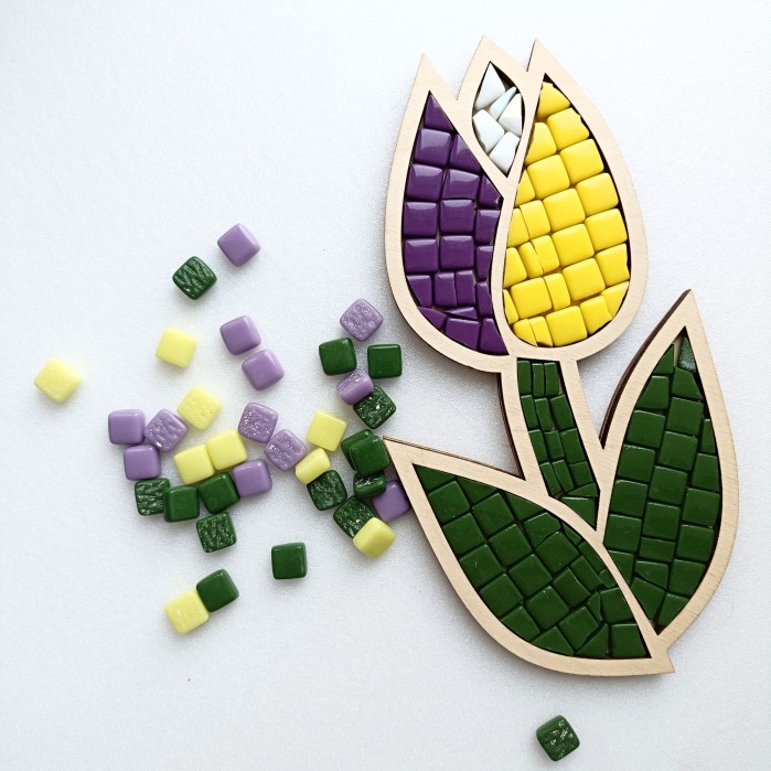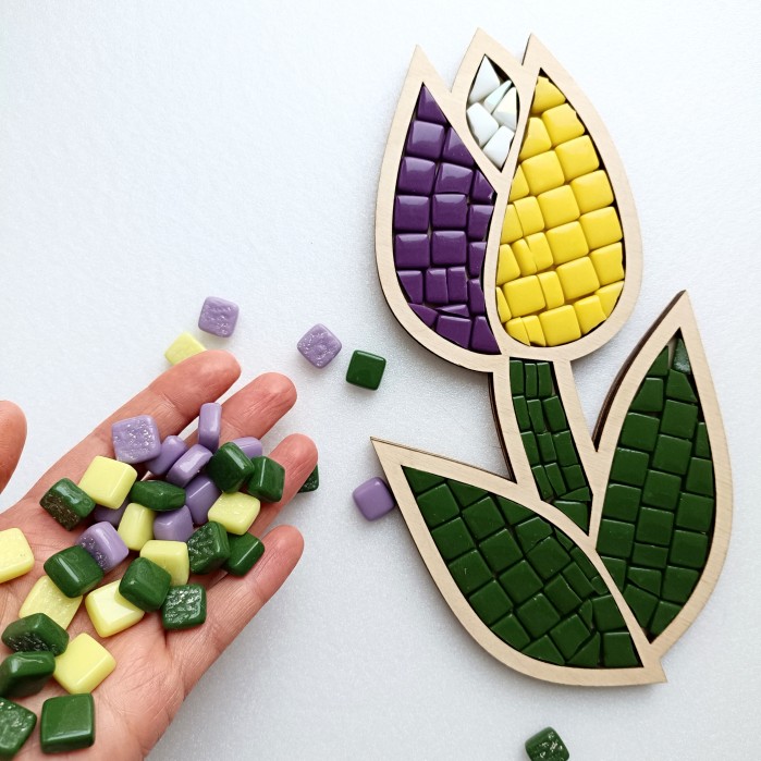 Такой цветок никогда не завянет!!!Набор мозаики "Тюльпан" Продумано все до мелочей. Отличный подарок, а также возможность самостоятельно пройти процесс создания мозаики. В наборе есть всё необходимое для самостоятельного творчества. деревянная основа,смальта наколотая по форме и плюс немного в запасе, если улетит кусочек какой в неизведанные дали)клей ПВА, кисточка для клея, затирка в баночке, в ней же можно развести затирку,шпатель для замешивания затирки, резиновый шпатель для нанесения затирки,подвес для готового изделия,инструкция.Увлекательный набор для семейного творчества. Готовую фигурку можно использовать как предмет интерьера, повесив на стену как картину, или как игрушку, как подставку под горячее, а можно подарить маме или бабушке. Мозаика развивает мелкую моторику, мышление, усидчивость.Не нужно никаких художественных навыков, справится каждый! Детям 5 лет творить под присмотром взрослых