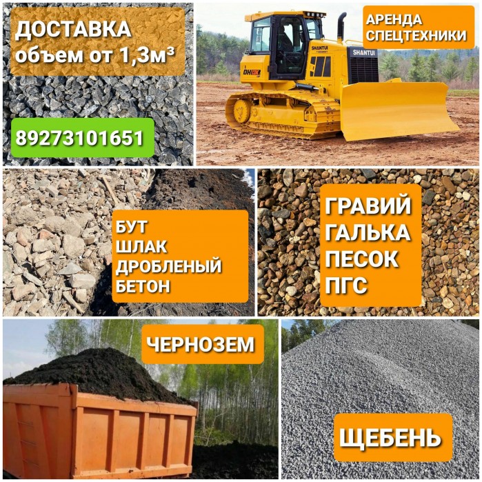 ДОСТАВКА: ЩЕБЕНЬ, ПГС, БУТ, ПЕСОК, ЧЕРНОЗЕМ, ГАЛЬКА