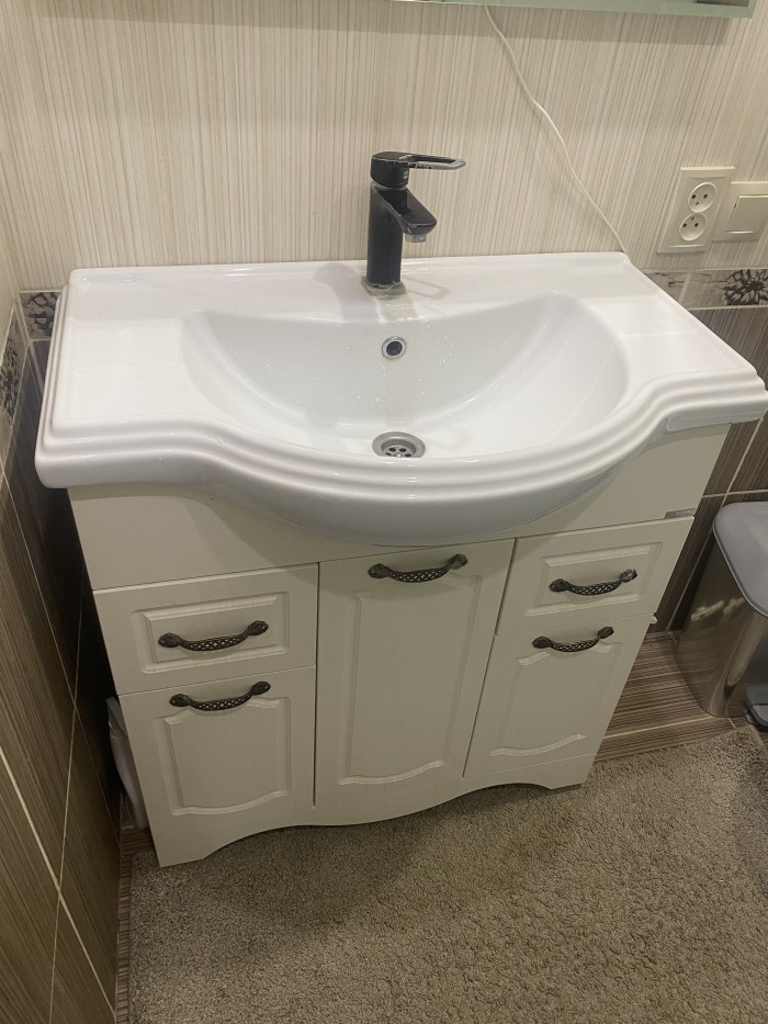 Двери межкомнатные , душевая кабина, раковина с тумбой и смесителем.