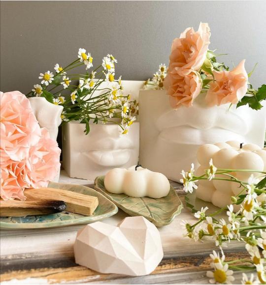Изделия из гипса, свечи из соевого воска, вощины, декор из эпоксидной смолы